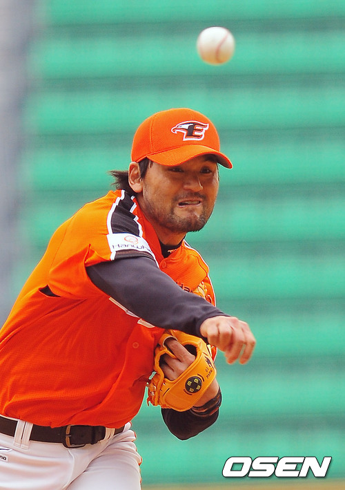 30일 오후 서울 잠실구장에서 LG 트윈스와 한화 이글스의 프로야구 시범경기에서 한화 선발 박찬호가 선발 역투를 펼치고 있다.