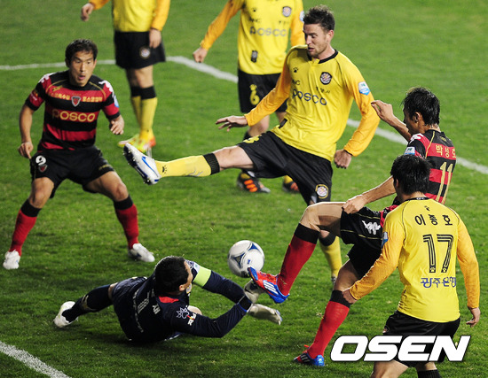 포항도 물러서지 않았다. 수비를 강화해 한 골 리드를 지키려고 할 수 있었지만 후반 32분 박성호 대신 노병준을 넣었다. 단순히 체력 저하로 인한 교체였다. 공격적인 모습은 여전했다.