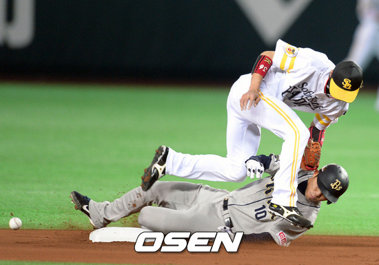 1회초 1사 1루에서 고토 투수앞 땅볼때 1루 주자 오비키 2루에서 포스아웃 처리되고 있다.