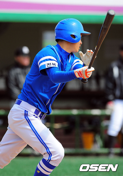 31일 오후 전북 익산구장에서 열린 '2012 고교야구 주말리그' 군산상고와 광주일고의 경기 3회초 1사 3루 군산상고 김기운이 선취 1타점 적시타를 날리고 있다.