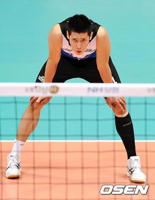 31일 오후 인천 도원실내체육관에서 벌어진 '2011~2012 프로배구' 플레이오프 1차전 대한항공과 현대캐피탈의 경기, 1세트 현대캐피탈 문성민이 수비 준비를 하고 있다.