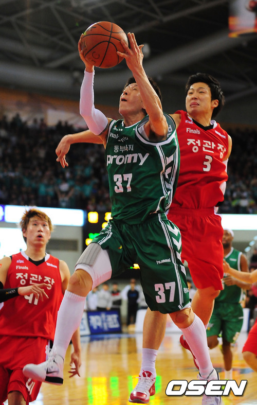 31일 오후 안양 실내체육관에서 열린 '2011-2012 KB국민카드 프로농구' 챔피언결정전 3차전 안양 KGC 인삼공사와 원주 동부의 경기 2쿼터 동부 박지현이 속공에 성공하고 있다.