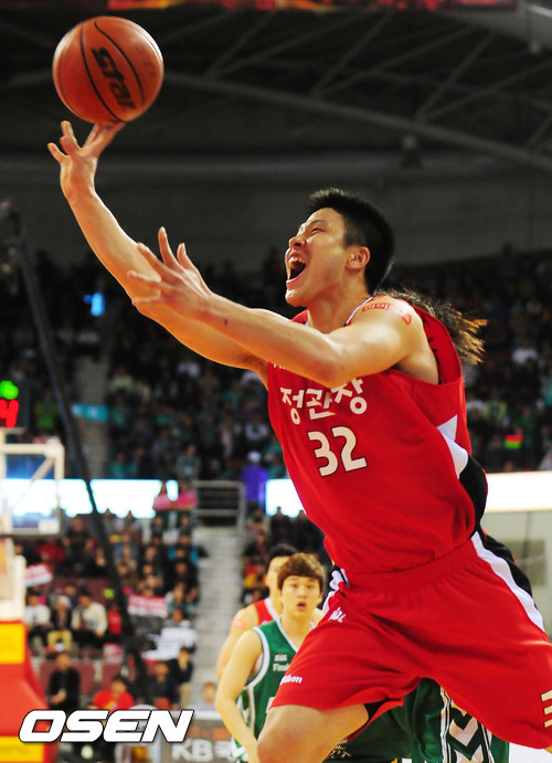 31일 오후 안양 실내체육관에서 열린 '2011-2012 KB국민카드 프로농구' 챔피언결정전 3차전 안양 KGC 인삼공사와 원주 동부의 경기 3쿼터 인삼공사가 김일두가 슛을 날리고 있다.