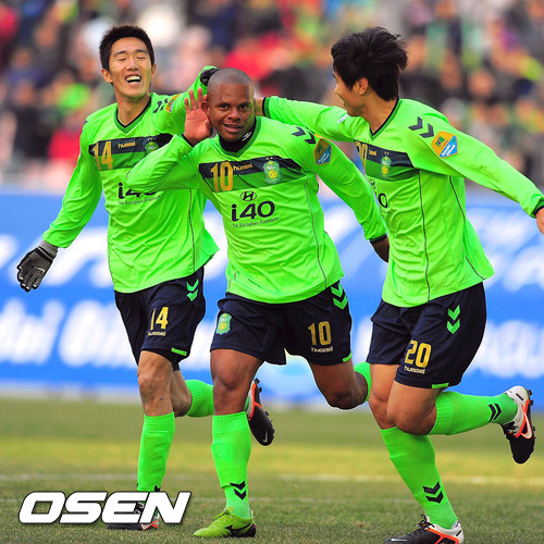 31일 오후 전주월드컵경기장에서 열린 '현대오일뱅크 K리그 2012' 전북 현대와 대구 FC의 경기 전반 전북 루이스가 선취골을 넣고 환호하고 있다.