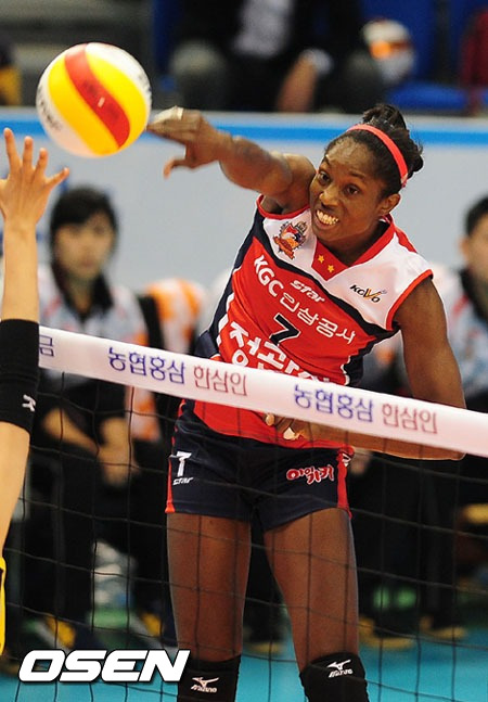 31일 대전 충무체육관에서 열린 '2011-2012 NH농협 V리그 챔피언결정전' 여자부 경기서 KGC인삼공사가 현대건설에 세트스코어 3-1(23-25, 25-19, 25-20, 25-14)로 역전승, 첫 승을 챙겼다.