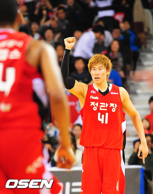 KGC 인삼공사 오세근이 종료가 얼마 남지 않은 상태에서 역전을 한 후 주먹을 불끈 쥐고 있다. / rumi@osen.co.kr