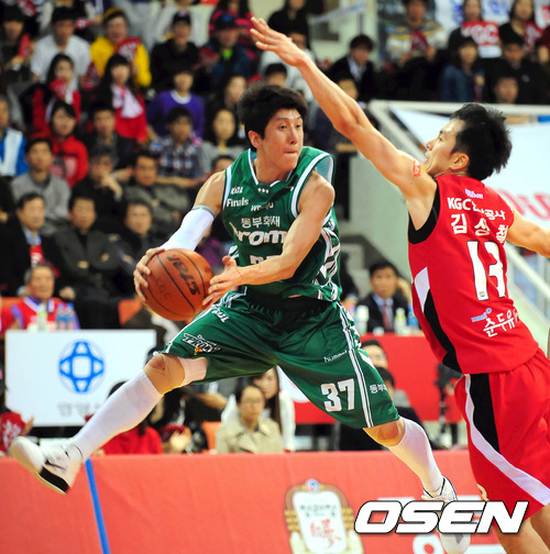 1일 안양 실내체육관에서 열린 '2011-2012 KB국민카드 프로농구' 챔피언결정전 4차전 안양 KGC 인삼공사와 원주 동부의 경기 3쿼터 동부 박지현이 패스할 곳을 찾고 있다.
