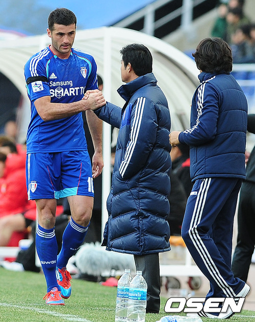후반 수원 윤성효 감독이 교체된 라돈치치를 격려하고 있다./jpnews@osen.co.kr