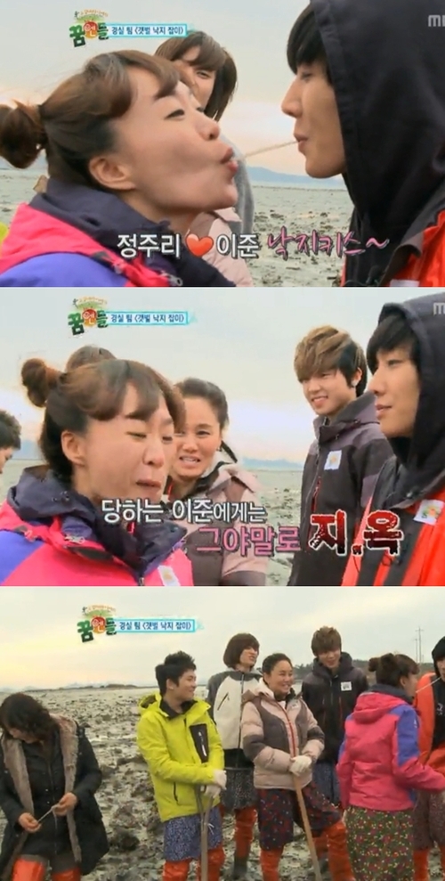 갯벌을 찾은 정주리는 산낙지를 맛보던 중 이준에게 자신의 입에 물린 낙지 다리 반대쪽을 내밀었다. 마지못해 낙지를 문 이준의 무표정한 모습과 달리 정주리는 시종 환한 미소를 지어 웃음을 자아냈다.
