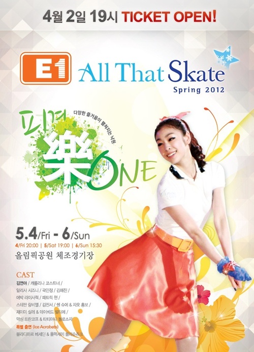 "최고의 스케이터와 최고의 관객이 최고의 공연으로 어우러지는 피겨 낙원"을 컨셉으로 한 'E1 올댓스케이트 스프링 2012'는 공연 소식이 알려지며 이미 지난해부터 공연을 기다려온 관객들로부터 문의가 빗발치고 있다. 이번 쇼에서는 김연아가 남장 연기로 파격 변신하는 등 새로운 갈라 프로그램 2개를 최초로 공개할 예정이다.