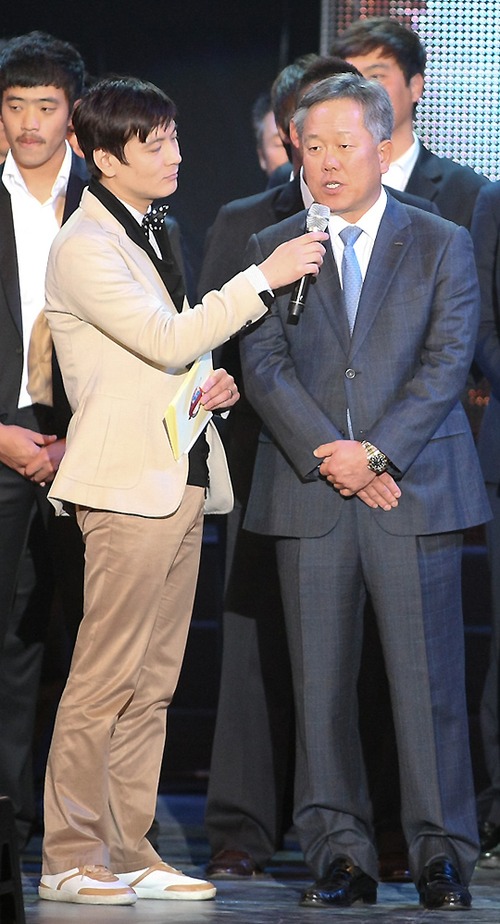 그리고 2부 인기가수 축하공연에서는 인기가수 씨스타, 포미닛, 인순이, 보이프렌드 등 화려한 출연진이 출정식 무대를 더욱 환하게 밝혔다. 한편 이날 행사는 개그맨 정상호씨와 원자현 스포츠 전문아나운서가 진행했고 방송은 개막전 전날인 6일 오후 11시 15분 부산 MBC를 통해 녹화 방송될 예정이다.