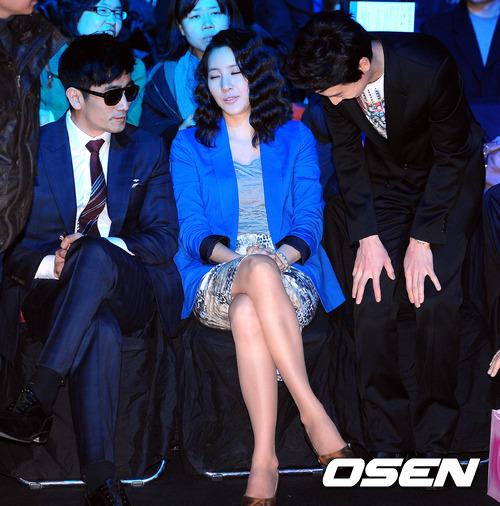 [OSEN = 백승철 기자] 2일 오전 서울 잠실 올림픽공원에서 열린 '2012-2013 춘계 서울패션위크'에 참석한 이제훈이 차인표에게 인사를 건내고 있다.