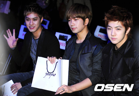 [OSEN = 백승철 기자] 2일 오전 서울 잠실 올림픽공원에서 열린 '2012-2013 춘계 서울패션위크'에 참석한 엠블랙이 패션쇼가 끝난 후 취재진들에게 미소를 짓고 있다.