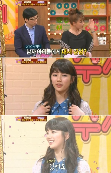 이날 방송은 90년대 여가수와 2010년대 여가수가 한 자리에 모인 ‘수지 vs 수지’ 스페셜로 꾸며졌다. 강수지, 조갑경, 원미연, 신효범, 미쓰에이 수지, 포미닛 소현, 씨스타 효린과 보라가 출연했다.