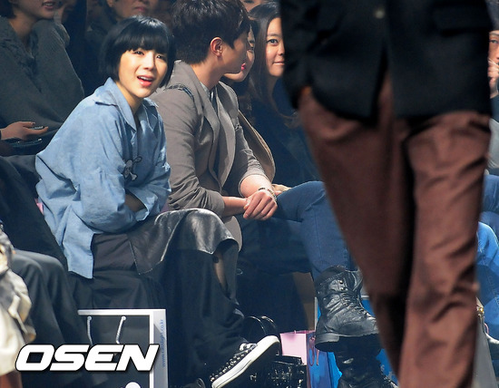 3일 오전 서울 잠실 올림픽공원에서 열린 '2012-2013 춘계 서울패션위크'에서 강동준 디자이너 패션쇼를 에이미가 관람 하고 있다.