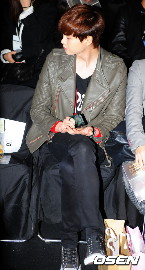 3일 오후 서울 잠실 올림픽공원에서 열린 '2012-2013 춘계 서울패션위크'에서 고태용 디자이너 패션쇼 시작 전 이종석이 객석에 앉아 기다리고 있다.
