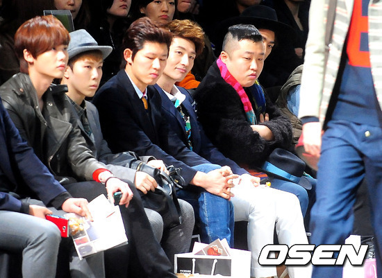 3일 오후 서울 잠실 올림픽공원에서 열린 '2012-2013 춘계 서울패션위크'에서 고태용 디자이너 패션쇼를 이종석과 손호영이 관람 하고 있다.