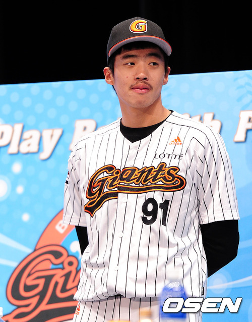 롯데 김성호가 포즈를 취하고 있다.