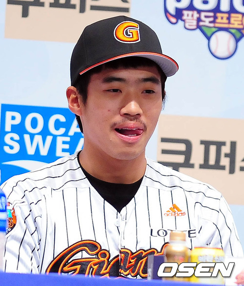 롯데 신인 김성호가 미디어데이에 참석하고 있다.