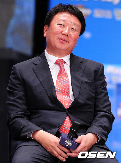 KIA 선동렬 감독이 미소를 지으며 간담회를 하고 있다.