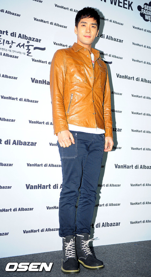 3일 오후 서울 잠실 올림픽공원에서 열린 '2012-2013 춘계 서울패션위크'에서 정두영 디자이너 패션쇼에 앞서 박윤재가 포토 타임을 갖고 있다.