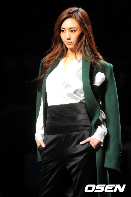 3일 오후 서울 잠실 올림픽공원에서 열린 '2012-2013 춘계 서울패션위크' 정두영 디자이너 패션쇼에서 가수 지나가 런웨이를 걷고 있다.