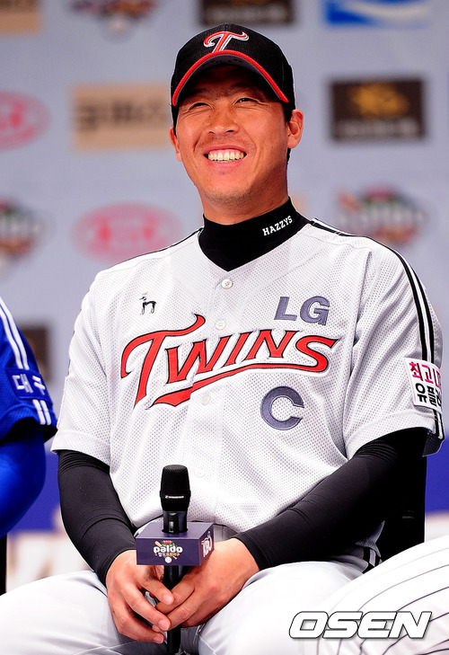 LG 이병규가 간담회 도중 미소짓고 있다.