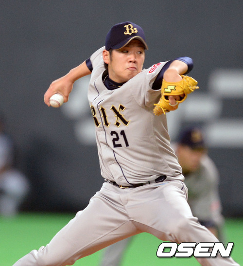 오릭스 선발 니시 유키가 선발 역투를 펼치고 있다.