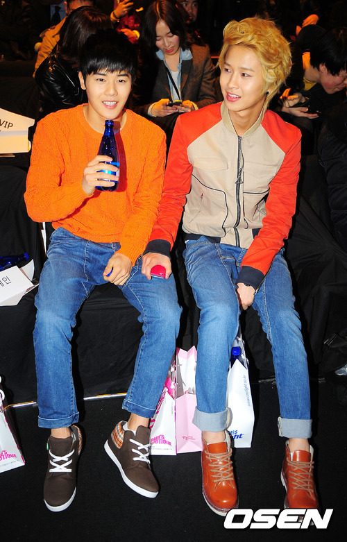 3일 오후 서울 잠실 올림픽공원에서 열린 '2012-2013 춘계 서울패션위크' 최범석 디자이너 패션쇼 시작 전 제국의 아이들 하민우와 김동준이 객석에서 기다리고 있다.