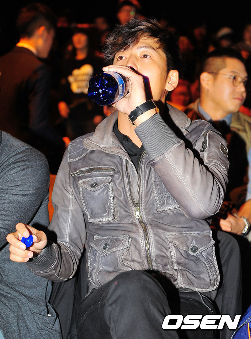 3일 오후 서울 잠실 올림픽공원에서 열린 '2012-2013 춘계 서울패션위크' 최범석 디자이너 패션쇼 시작 전 배우 이정진이 물을 마시고 있다.