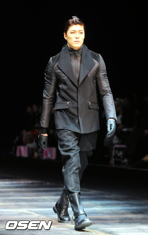 3일 오후 서울 잠실 올림픽공원에서 열린 '2012-2013 춘계 서울패션위크' 이주영 디자이너 패션쇼에서 탤런트 이재윤이 런웨이를 걷고 있다.