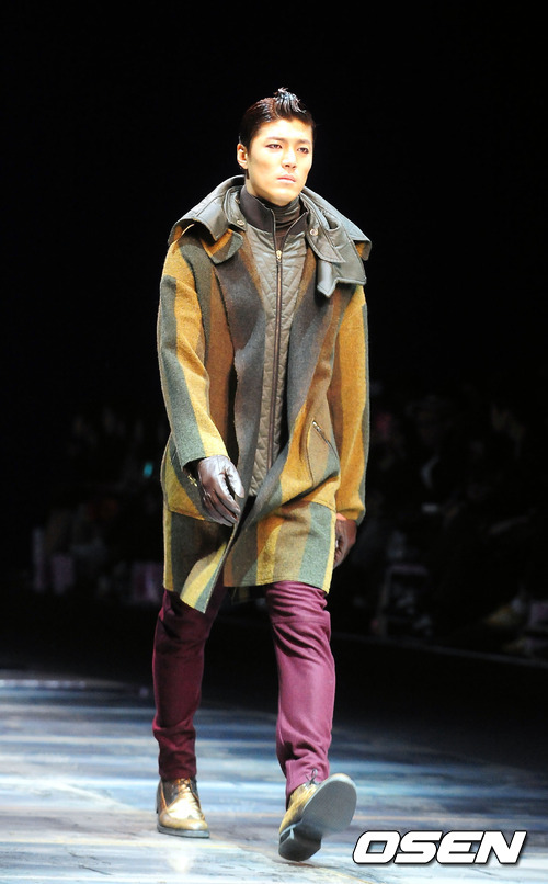 3일 오후 서울 잠실 올림픽공원에서 열린 '2012-2013 춘계 서울패션위크' 이주영 디자이너 패션쇼에서 탤런트 이재윤이 런웨이를 걷고 있다.