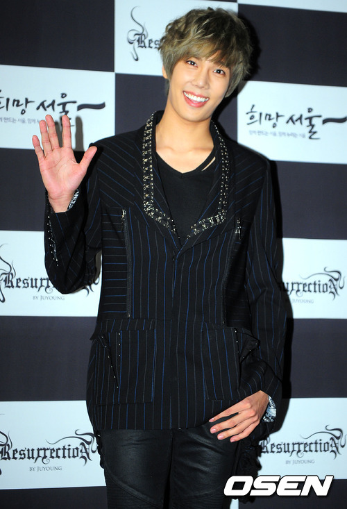 3일 오후 서울 잠실 올림픽공원에서 열린 '2012-2013 춘계 서울패션위크' 이주영 디자이너 패션쇼에서 박정민이 포토 타임을 갖고 있다.