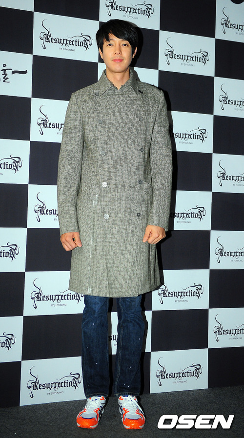 3일 오후 서울 잠실 올림픽공원에서 열린 '2012-2013 춘계 서울패션위크' 이주영 디자이너 패션쇼에서 김영준이 포토 타임을 갖고 있다.