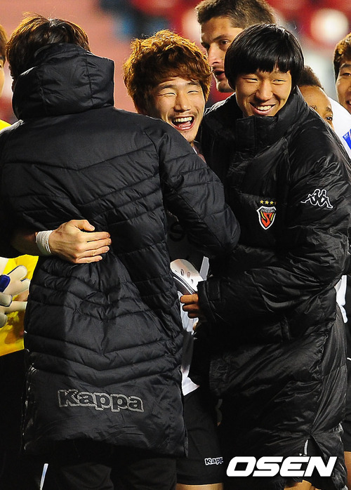 경기를 마치고 포항 김대호가 동료들과 기쁨을 나누고 있다./ rumi@osen.co.kr