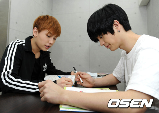 비투비 정일훈과 육성재가 일본어 공부를 하고 있다.