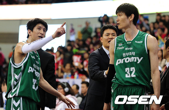 4일 오후 안양 실내체육관에서 열린 '2011-2012 KB국민카드 프로농구' 챔피언결정전 5차전 안양 KGC 인삼공사와 원주 동부의 경기, 1쿼터 동부 김주성이 파울을 범하고 벤치로 들어서고 있다. 김주성은 반칙 3개