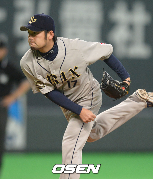 6회말 2사 1루에서 오릭스 중간계투 가츠키 료타가 역투를 펼치고 있다.
