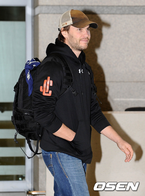4월 11일 전세계 개봉을 앞두고 있는 영화 '배틀쉽' 홍보를 위해 4일 오후 인천국제공항을 통해 입국한 배우 테일러 키취가 입국장을 나가고 있다.