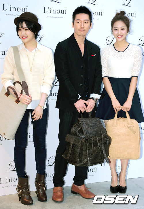 4일 오후 서울 압구정 로데오거리 '리누이' 플래그십 스토어 오픈 기념행사에서 이유비, 장혁, 조보아가 포토타임을 갖고 있다.