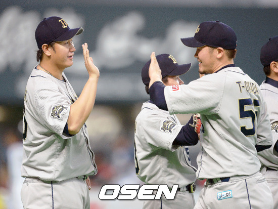 경기 종료후 이대호가 T-오카다와 승리의 기쁨을 나누고 있다./ ajyoung@osen.co.kr