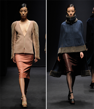 신체보호 장비를 울, 무스탕, 퍼, 가죽 등 소재들의 패치로 표현해 투박하지 않은 세련된 클래식함으로 표현됐다.