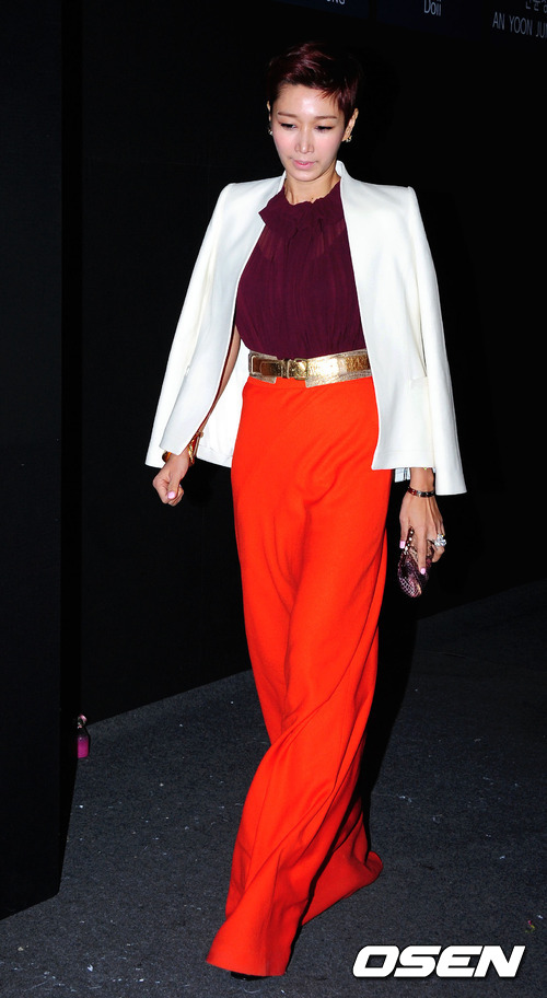 5일 오전 서울 잠실 올림픽공원에서 열린 '2012-2013 춘계 서울패션위크' 김석원,윤원정 디자이너 패션쇼에 앞서 변정수가 포토타임을 위해 걸어들어오고 있다.