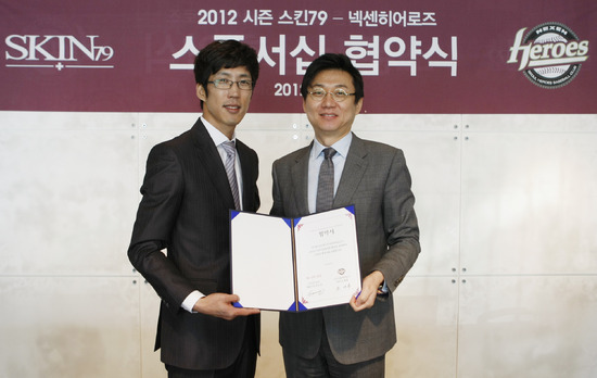 넥센 히어로즈는 5일 오전 11시 30분 목동구장에서 기능성 천연 화장품 브랜드 '스킨79'와 2012시즌 스폰서십(광고 후원) 계약을 체결했다.