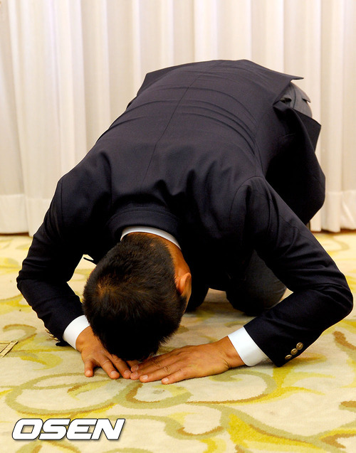 5일 오후 서울 청담동 리베라호텔에서 진행된 KIA 이종범의 은퇴 기자회견에서 이종범이 큰절을 하고 있다.