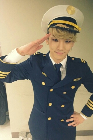 사진 속 키는 뮤지컬 무대에 입고 등장하는 조종사 제복을 차려 입고 한 손을 들어 경례하는 포즈를 취했다. 특히 여유롭게 미소 띠고 있는 얼굴에서 자신감이 엿보인다.