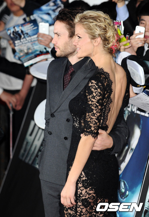 5일 오후 서울 삼성동 메가박스 코엑스에서 열린 영화 '배틀쉽' (감독 피터 버그) 레드카펫 시사회에서 배우 테일러 키취, 브루클린 데커가 포토타임을 갖고 있다.