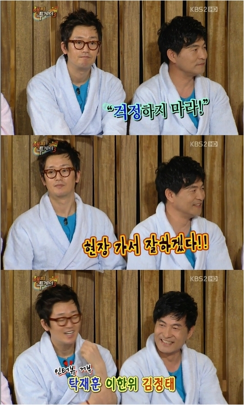 유재석은 “두 분 모두 본인이 현장에 가서 잘하겠다고 하셨다”고 말하면서 김정태와 이한위를 지목했다. 김정태는 “예능에 출연해서 지금껏 대본을 한번도 본 적이 없다”고 해명했다.