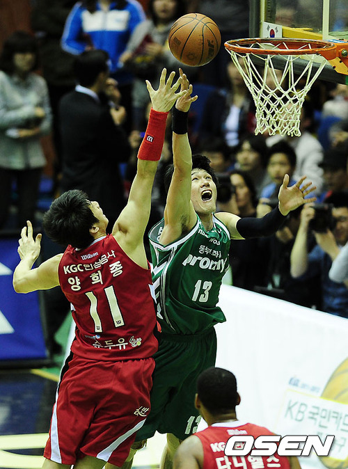 인삼공사는 지난 4일 안양에서 열린 챔피언결정전 5차전서 크리스 다니엘스의 17점 17리바운드와 오세근의 16점 9리바운드, 양희종의 15점에 힘입어 원주 동부를 80-72로 꺾고 승리를 거뒀다.
