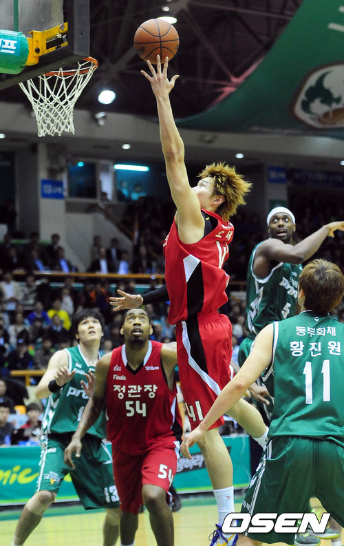 6일 오후 원주 치악체육관에서 열린 '2011-2012 KB국민카드 프로농구' 챔피언결정전 6차전 원주 동부와 안양 KGC 인삼공사의 경기 3쿼터 인삼공사 오세근이 레이업을 시도하고 있다.